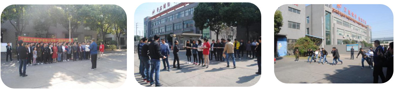 为了加强公司企业文化建设,丰富职工文化生活,增强员工之间相互了解和团队协作,提高员工工作积极性和工作态度。2018年10月27日在人事部的精心组织下,成功举办了万里锻件第一届趣味运动会。本次运动会分为团体赛和个人赛,团体赛项目有高山流水、两人三足、足式保龄球、跳大绳四项;个人赛有踢毽子、手足情深、过桥袋鼠、企鹅漫步四项。