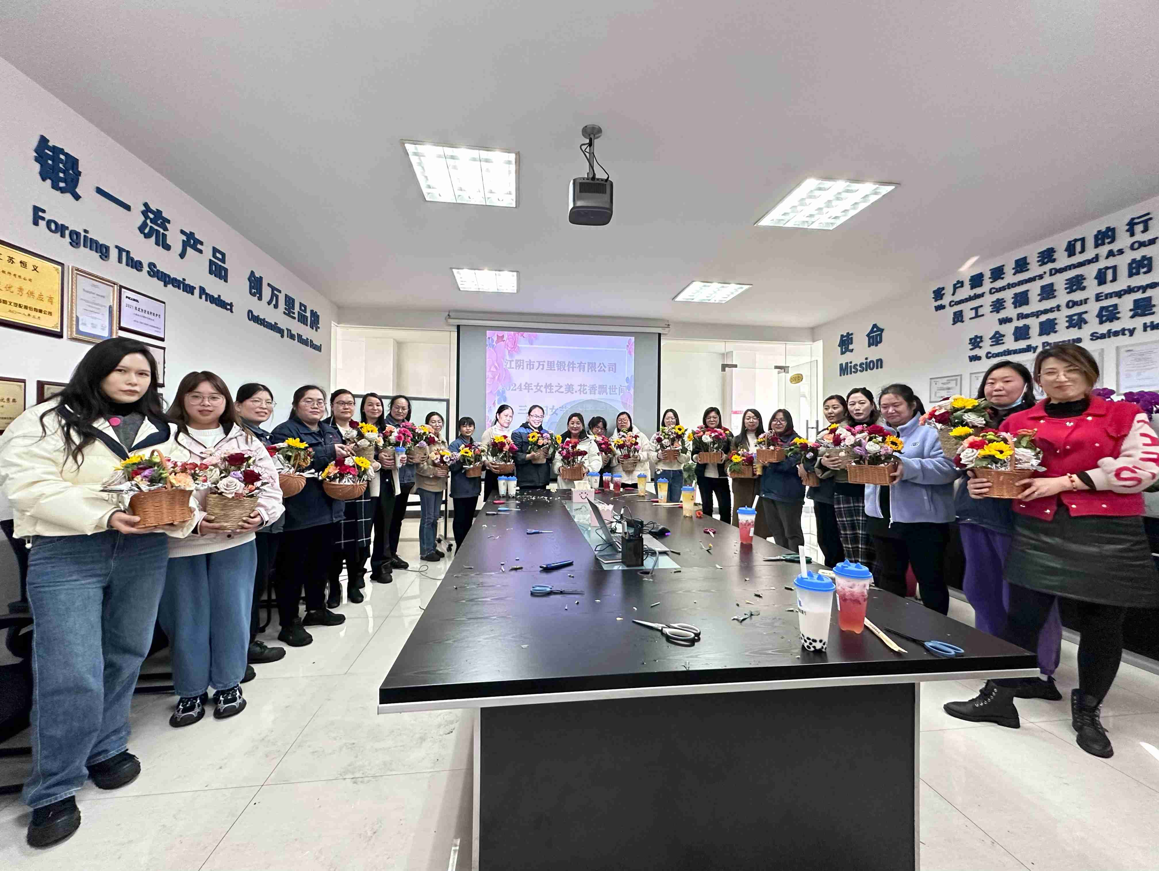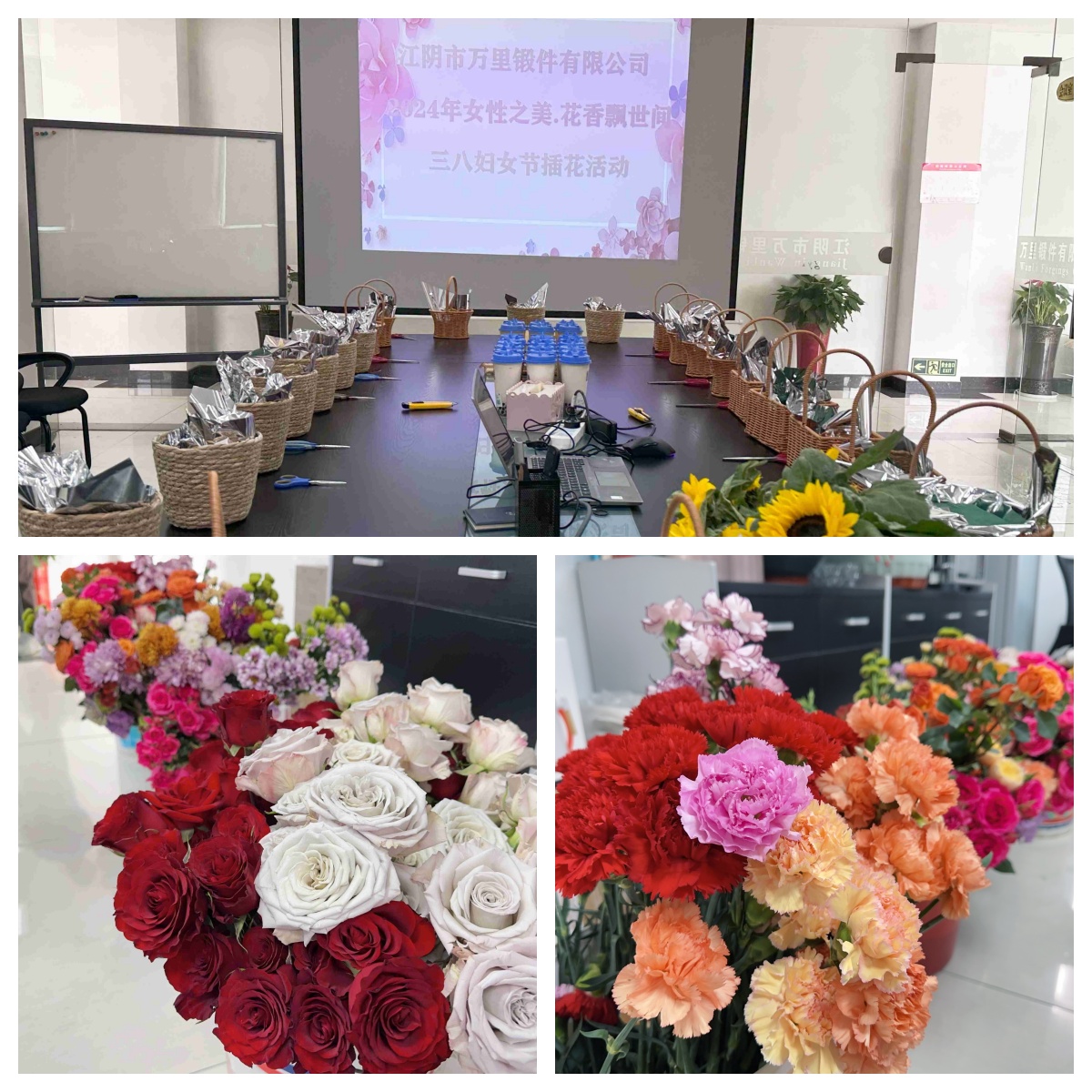 心怀暖阳,笑迎春光。在这个暖意融融的春天,我们迎来了第114个“三八”国际劳动妇女节。为庆祝“三八”妇女节,江阴市万里锻件有限公司为每位女职工派发了慰问金。同时,为丰富公司女职工精神文化生活,活跃公司文化氛围,陶冶职工情操,展示公司女职工良好的精神风貌,2024年3月8日下午1点,江阴市万里锻件有限公司以“女性之美·花香飘世间”为主题,组织开展了“三八”妇女节艺术插花活动,向公司的每一个“她”致以深深敬意,表示节日的祝福。