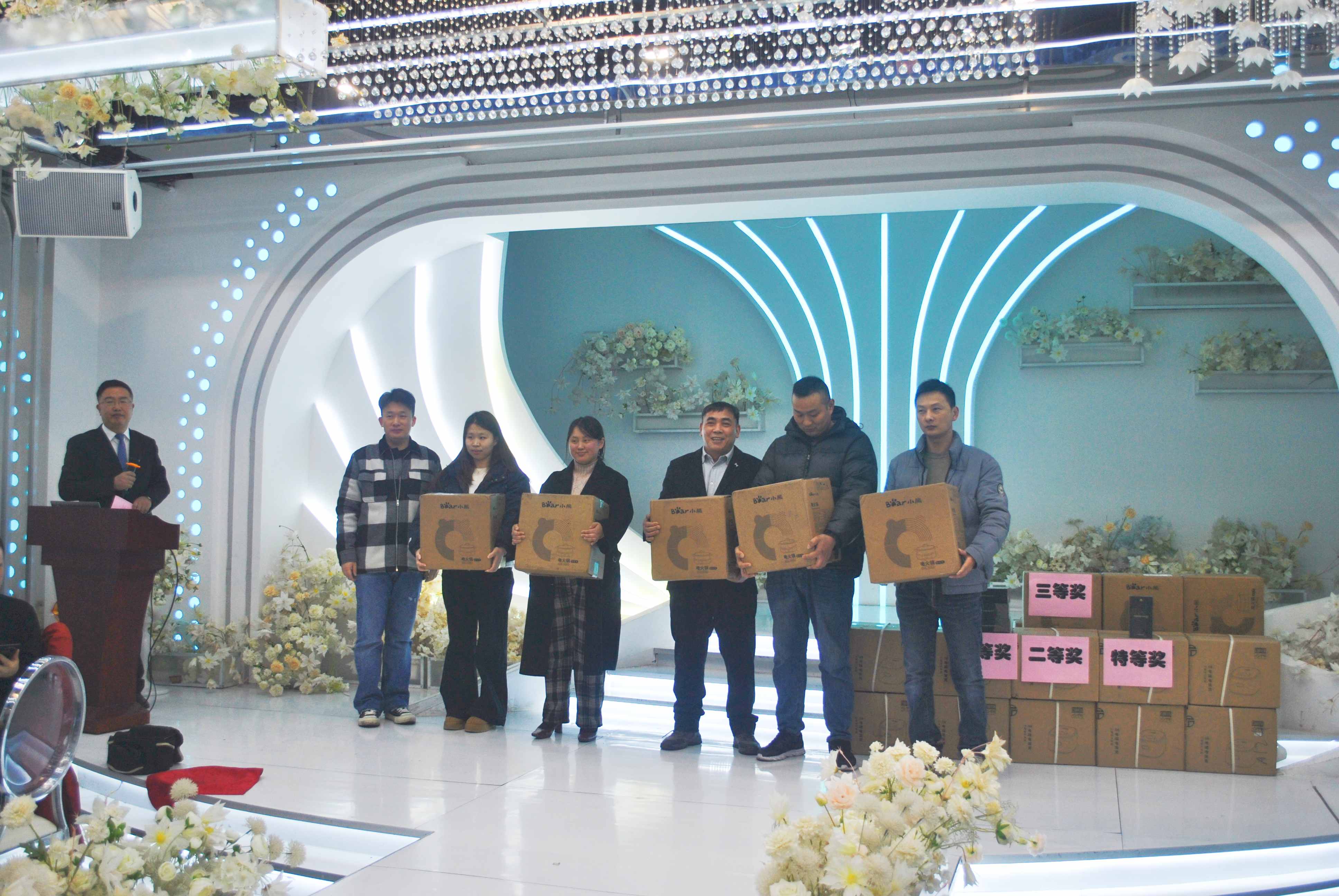 致辞后,备受期待的抽奖环节轮番上演,成为年会亮点。公司备有丰富奖品,奖项逐一揭晓,现场氛围持续高涨、喝彩不断。中奖员工喜不自胜,未中奖员工也沉浸在欢乐中,在互动中增进情谊,感受公司的诚意与祝福。